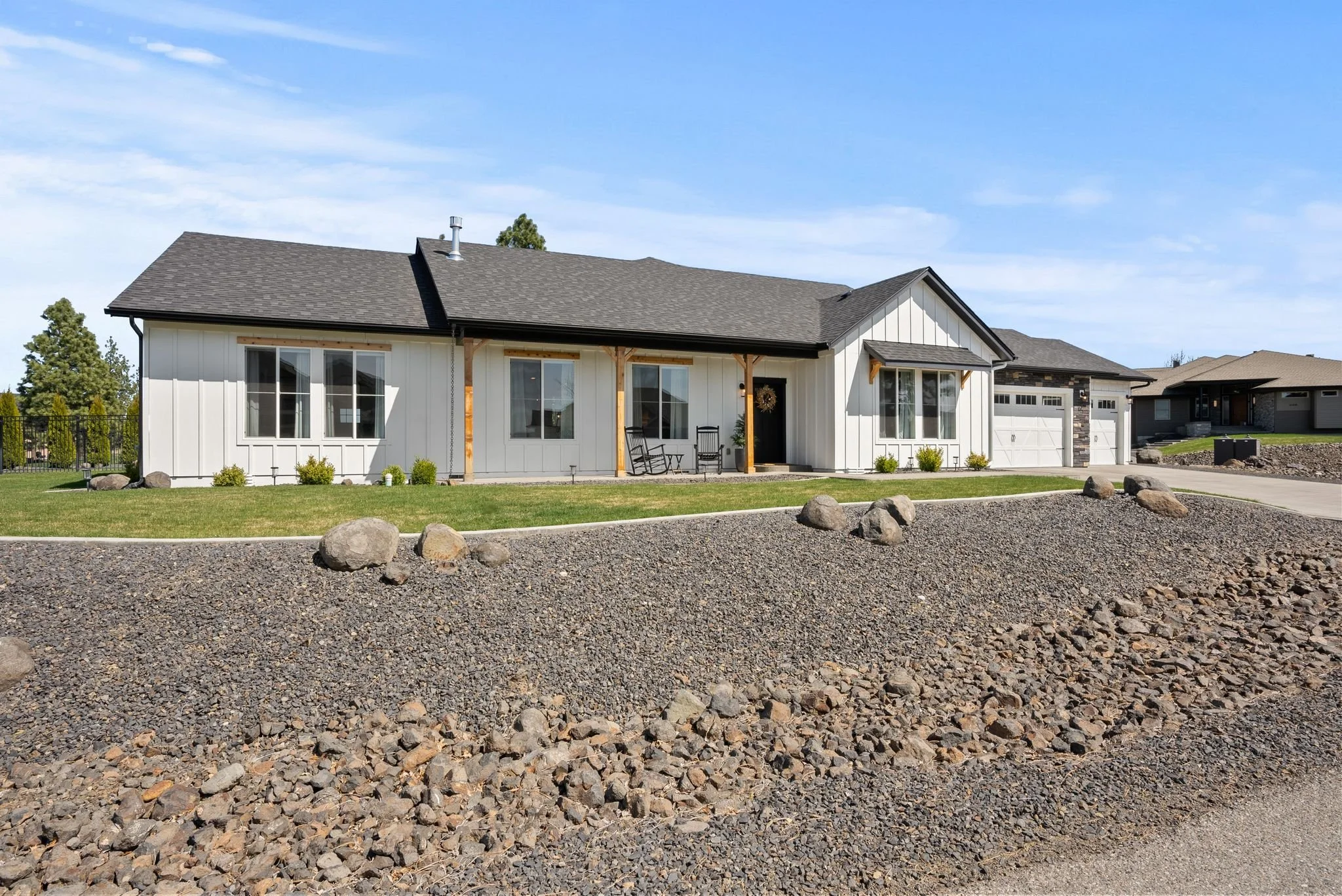 Seller offering a credit to a 1-1 temp rate buy-down. Experience luxury living in this stunning, move-in ready 2021 farmhouse in Red Fox Ridge’s private gated community. Enjoy 2711 sq ft of exquisite design: 4 beds, 2.5 baths, open flow with vaulted ceilings & custom beams. The gourmet kitchen inspires with dual ovens & a large island, perfect for gatherings in the adjacent dining area. Retreat to the luxurious primary suite. Entertain in the bonus room with a bar. Relish outdoor serenity on the 0.51-acre corner lot backing to a secluded, wooded HOA easement teeming with wildlife. Enjoy landscaped grounds, a stone firepit, and covered patio. Benefit from a 3-car garage & smart home features. Enjoy breathtaking views of Mica Peak, Mount Spokane, and Spokane Valley. Close to amenities. Your dream lifestyle awaits! Call for a tour.