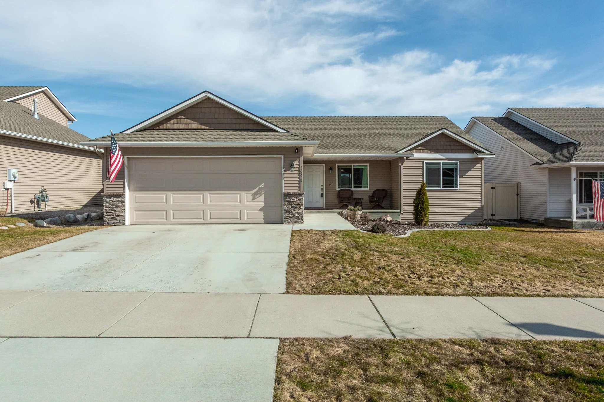 Bordering open farmland, this 4-bedroom, 3-bathroom home offers a tranquil, secluded atmosphere in the highly sought-after Fox Ridge neighborhood. Enjoy easy access to paved trails, Fairchild Air Force Base, schools, shopping, and just a 20-minute drive to downtown Spokane. The floor plan features spacious dining and living areas off the kitchen which is perfect for gatherings. The kitchen has been updated with hard surface countertops, flooring, and appliances. The expansive lot includes a fenced backyard, private deck, and separate patio areas—ideal for outdoor entertaining. An inviting front porch completes this charming property.
