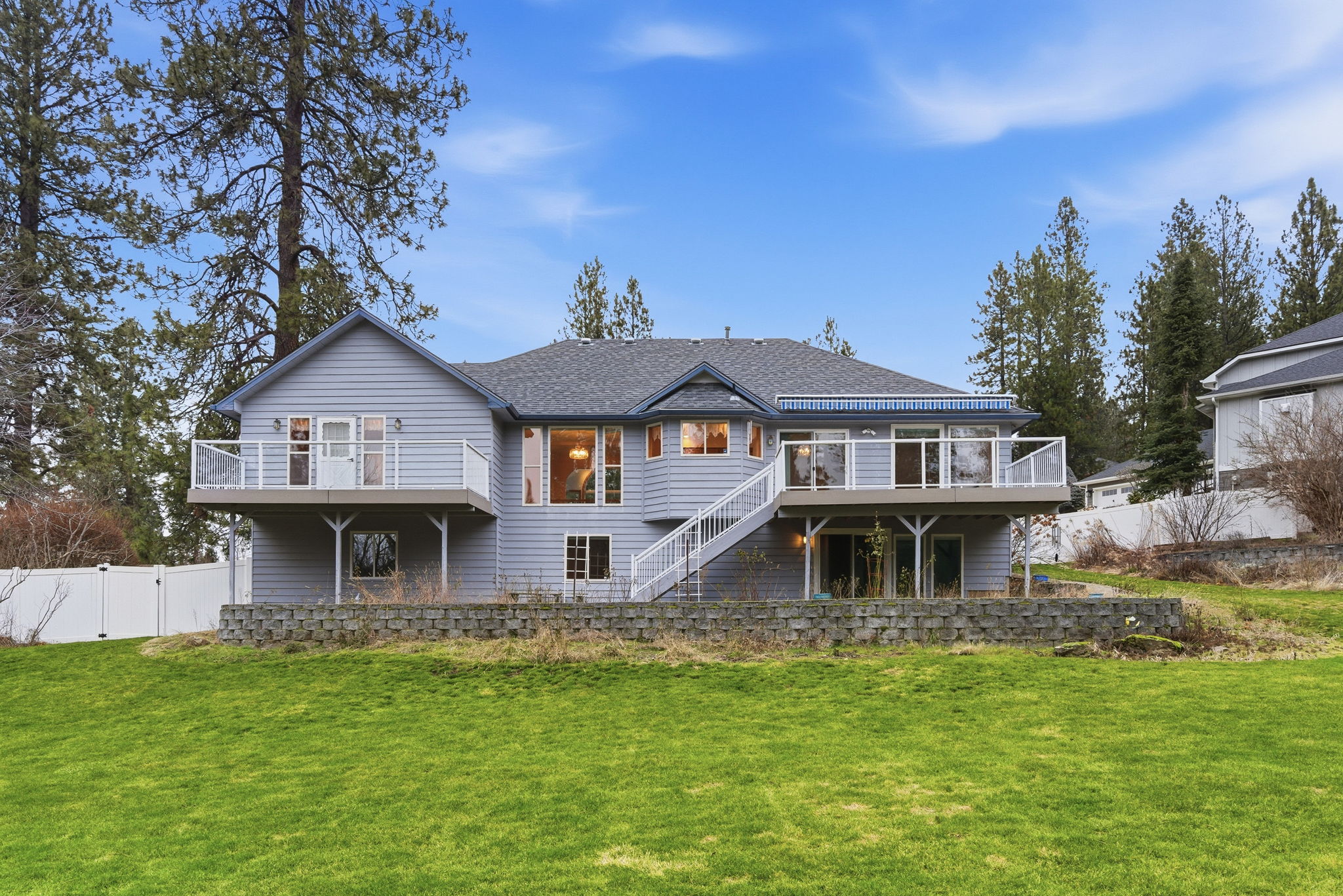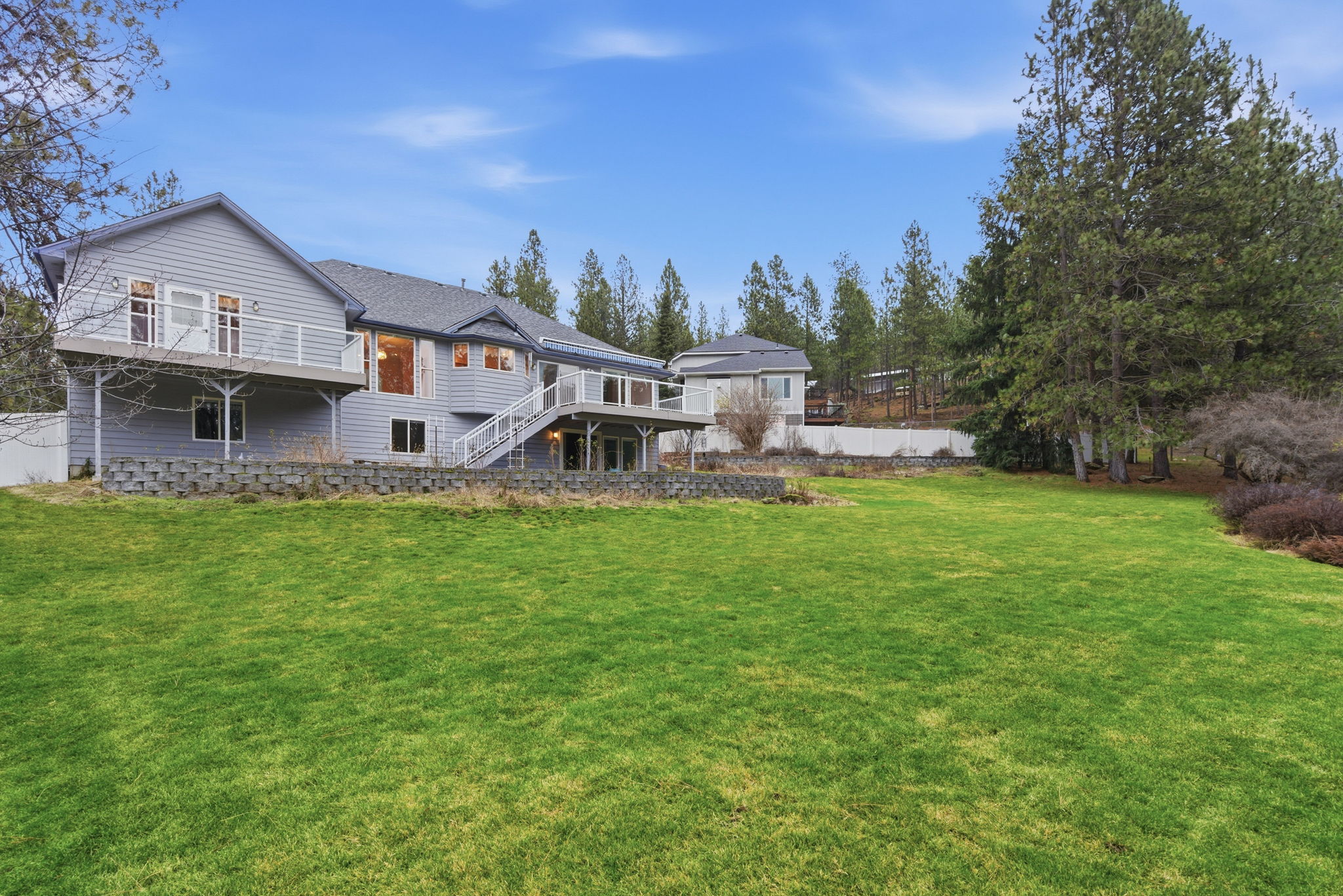 Discover the perfect blend of comfort and flow in this expansive 3,354 sq. ft. Veradale home. Situated on a quiet cul-de-sac, this residence is designed for seamless, long-term living. The main level features a primary suite with a private 5-piece bath, laundry, formal dining, a bright sitting room, and a spacious living area—everything you need for true "forever home" convenience on one floor. Love the outdoors? Step out onto two expansive decks overlooking your lush, park-like backyard—a private oasis perfect for summer entertaining or quiet mornings. The daylight walk- out basement offers incredible flexibility for a home gym, media room, or guest quarters. Modern comforts include gas forced air, central AC, and a 2-car garage. Located just minutes from the best of Spokane Valley shopping and dining, this 4-bed, 3-bath gem offers space, privacy, and an unbeatable location. Schedule your private tour today!