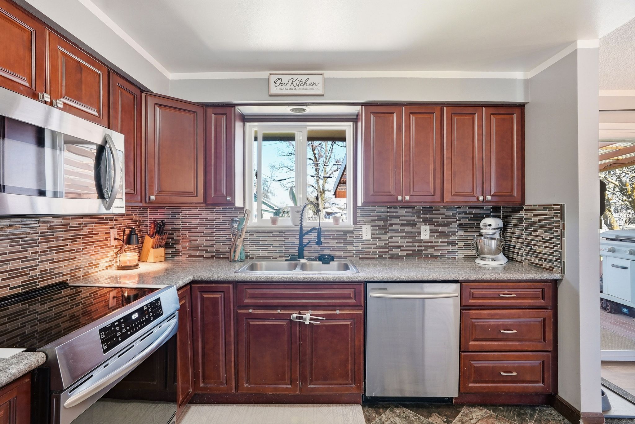 - Kitchen & Appl: Fr Stnd Rng, D/W, Refrig, Disposal, Microwave, Hrd Surface Counters