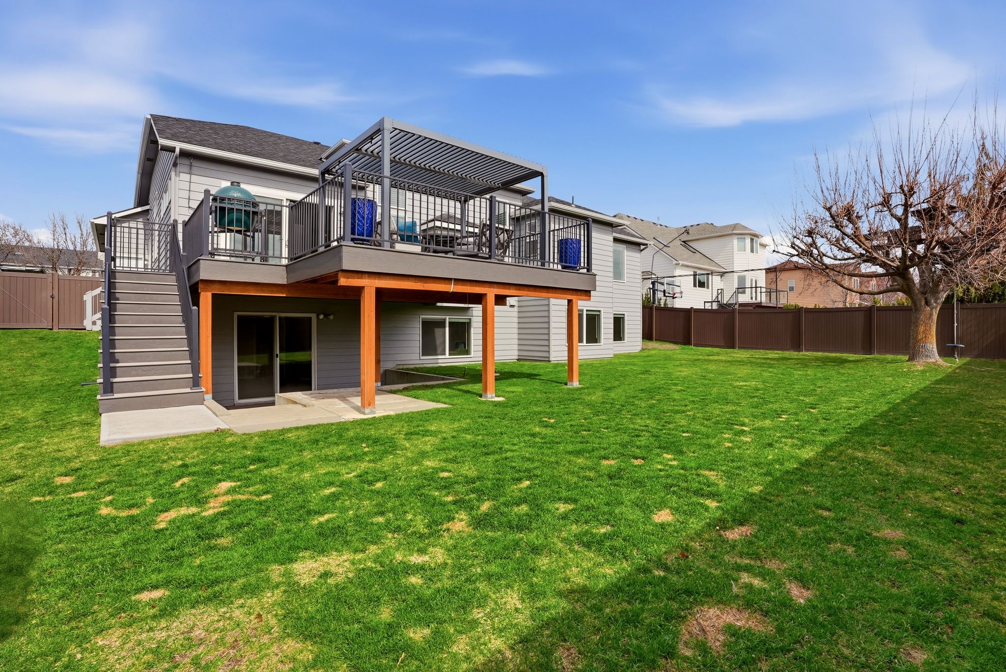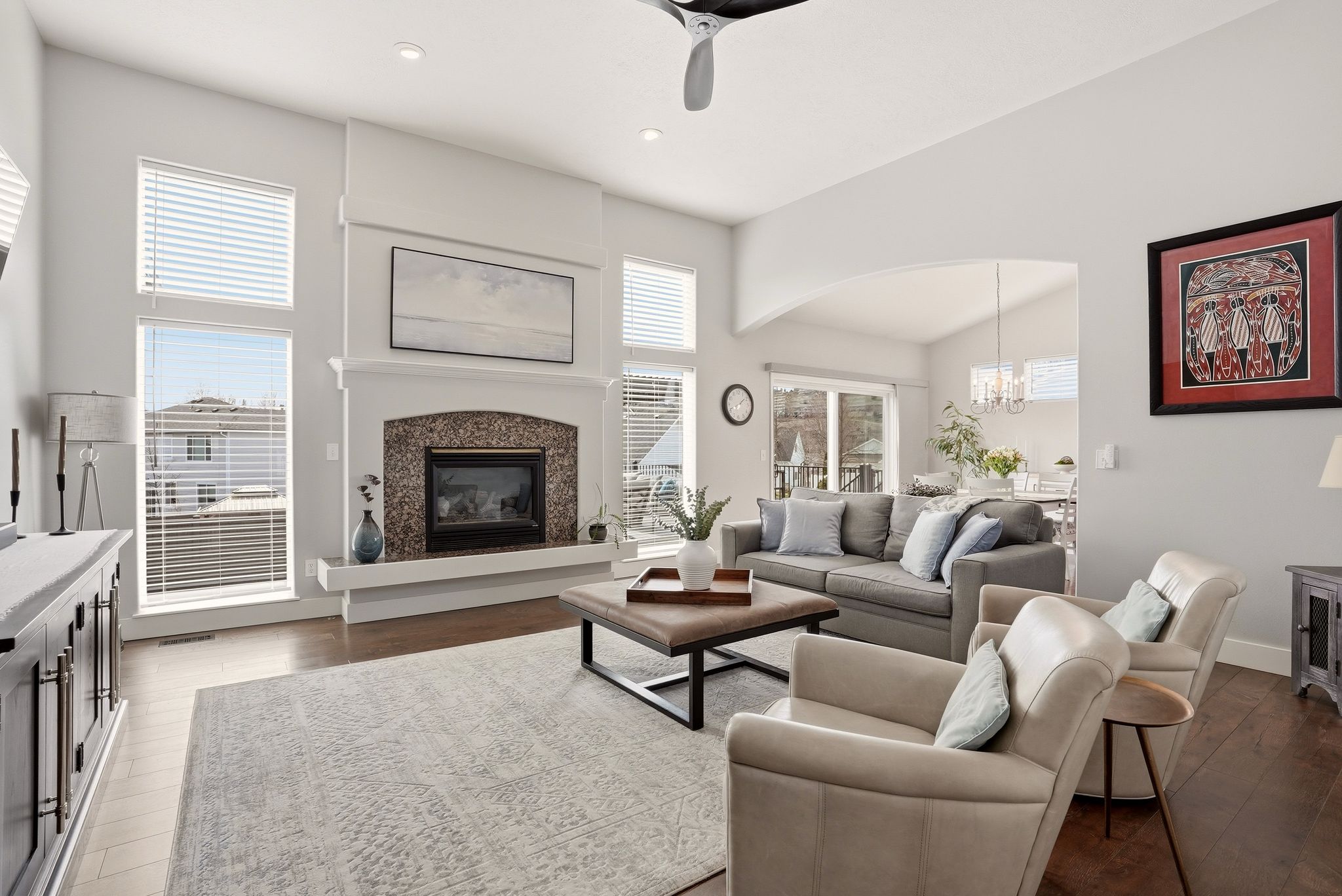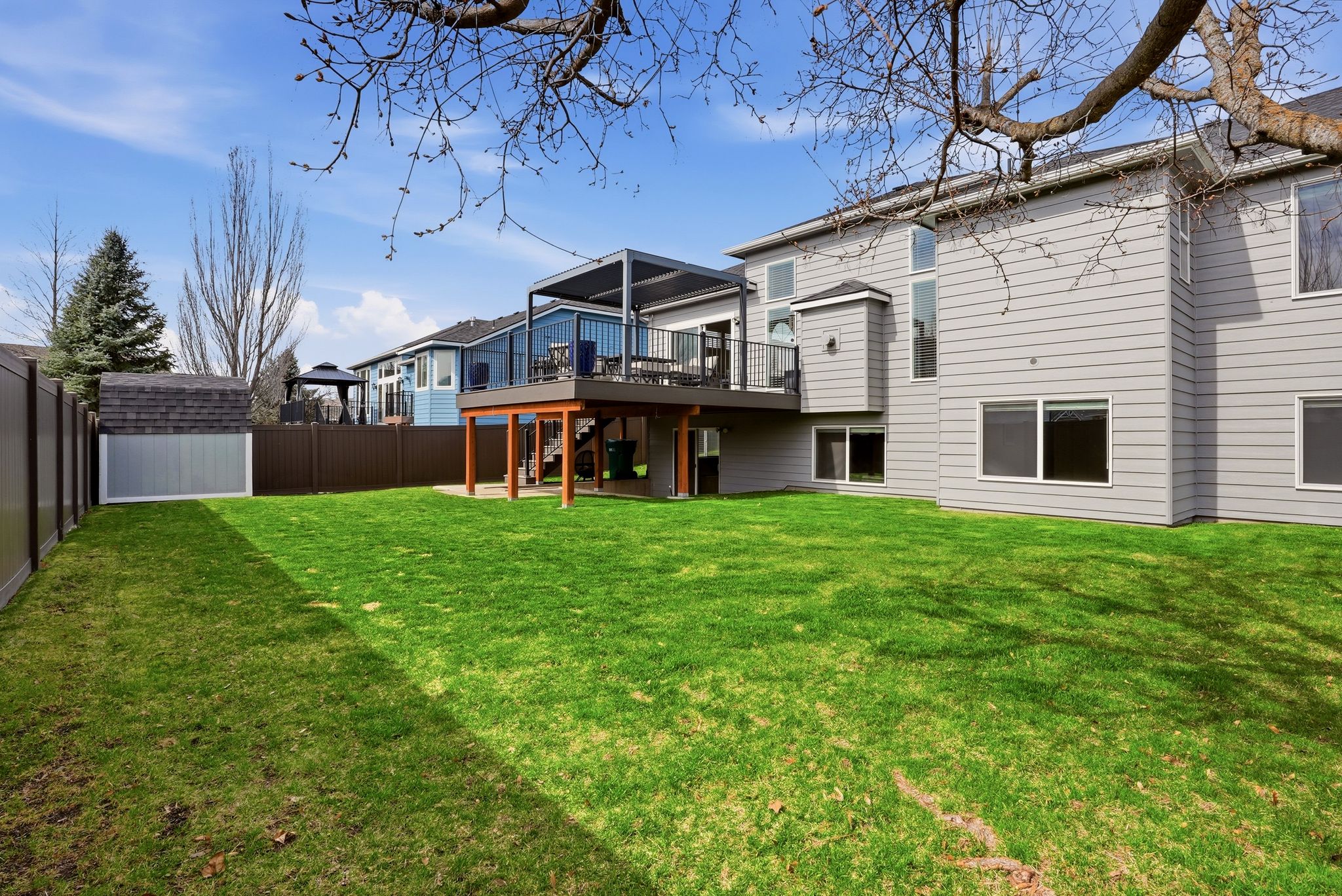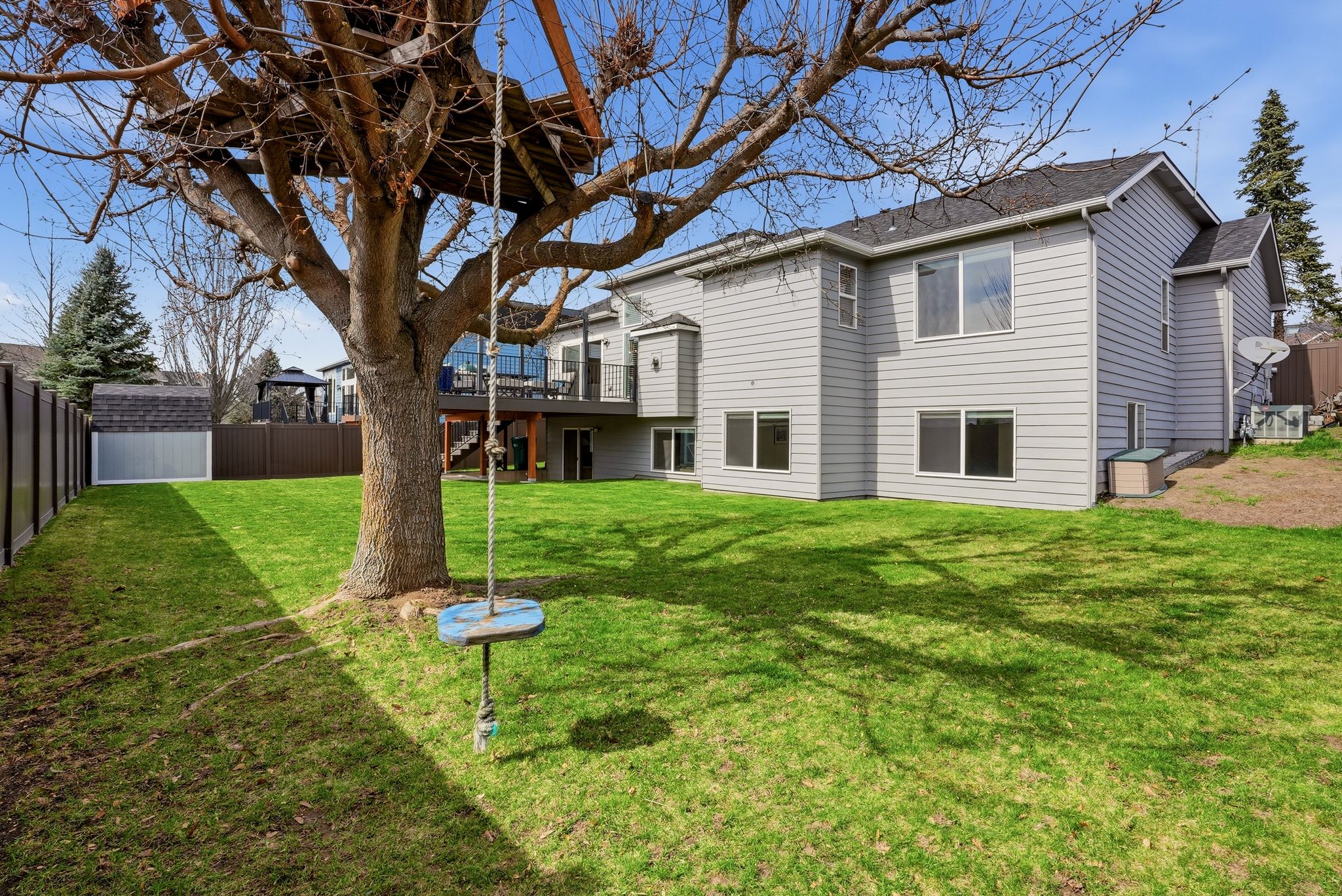 Imagine waking up to framed views of Mica Peak and a home bathed in natural light. This isn’t just a 4-bedroom house; it’s a lifestyle sanctuary in the heart of Liberty Lake. Start your mornings in a kitchen designed for connection, featuring custom soft-close cabinetry and elegant granite counters. Your summer evenings are defined by the new, expansive entertaining deck—accessed through a premium Renewal by Anderson slider—where you can host BBQs in your private, vinyl-fenced backyard while the sun sets over the peaks. Just a block away, Pavilion Park serves as your extended backyard for summer movies and community festivities, with top-rated elementary schools just a short stroll away. Inside, the soaring ceilings create a sense of grand scale, while the daylight basement’s open floor plan and southern-facing windows offer the perfect, sun-drenched space. With a walk-in closet in every bedroom and a two-car garage for your gear, this home offers the effortless organization and luxury