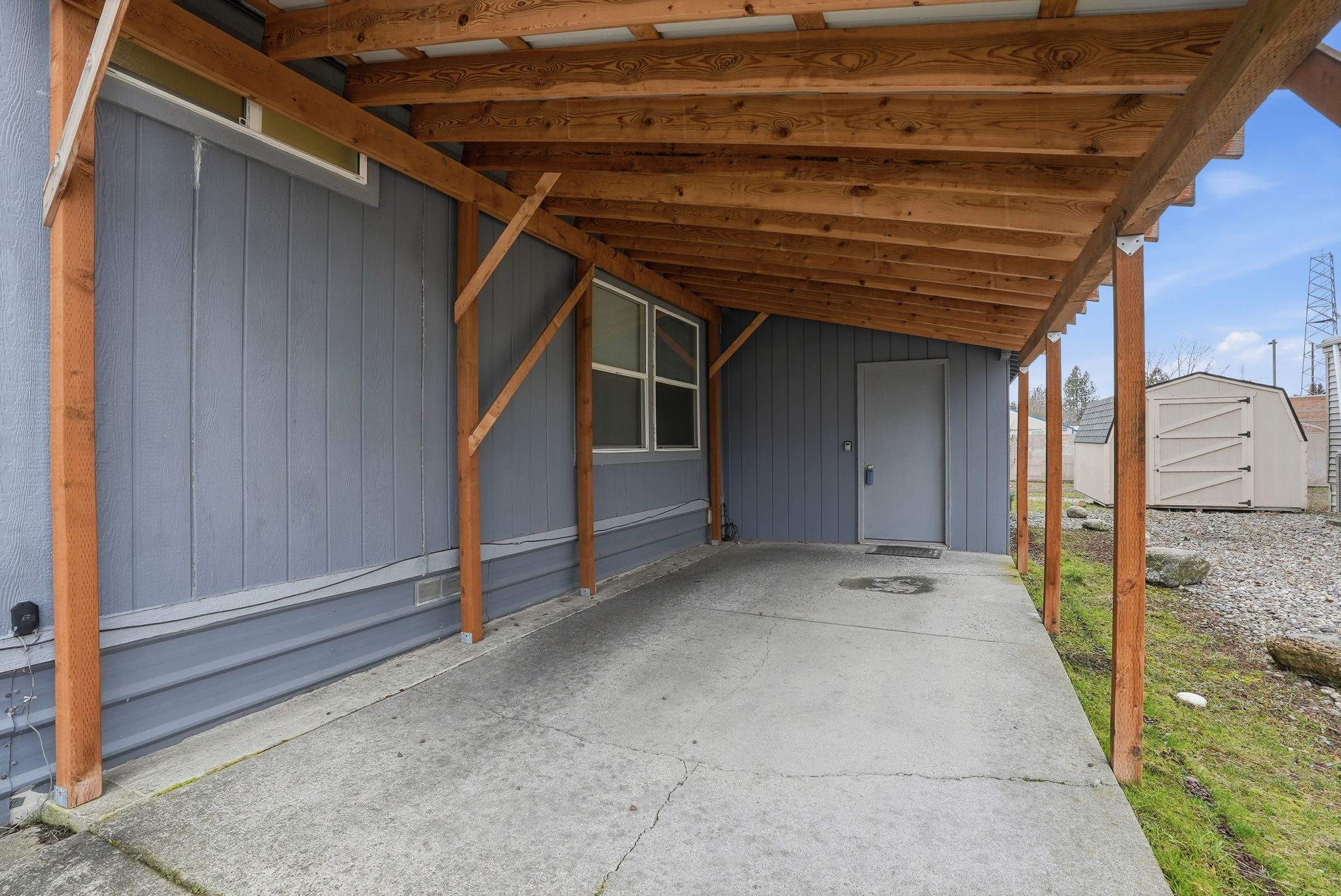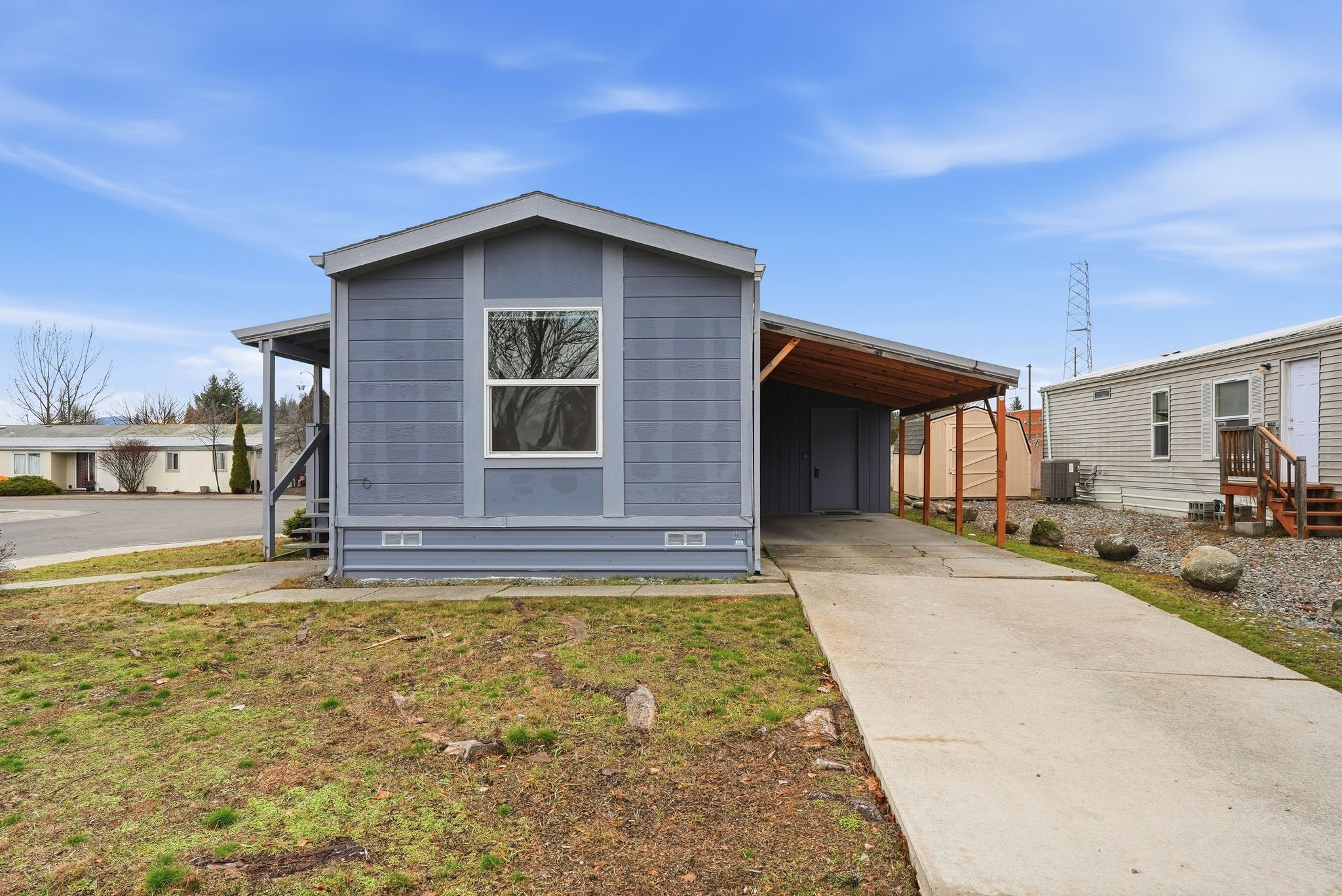 Move-in ready manufactured home on leased land in Oak Crest Park, Coeur d'Alene. This well-maintained home offers 2 bedrooms, 2 bathrooms, plus a 10' x 19' attached stick-built room with sliding glass door ideal for a hobby space, entertainment room, or extra storage. Recent updates include vinyl windows, light fixtures, ceiling fans, and a newer roof. Located on a quiet loop street with minimal traffic. Oak Crest Park features a clubhouse, pool, picnic area, playground, walking paths, and a welcoming community atmosphere.